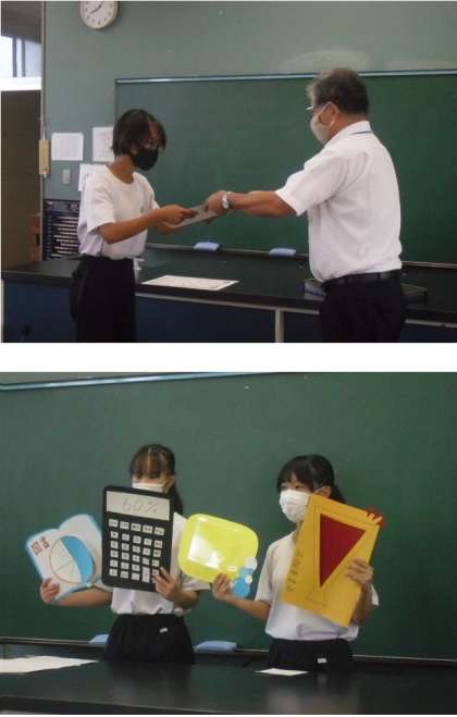 生徒集会に先立って、陸上の全国標準記録を突破した小針さんの表彰をしました。
