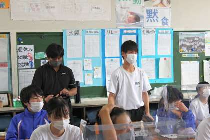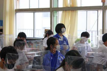 発表では、自分の意見を堂々と言えました。積極的な発言により、授業は着々と進んでいきます。本日は、生徒達の意欲的な学習態度が多く見られ、あっという間の50分間でした。先生方がたくさん見学に来て、みんな少し緊張したかな?2Dの皆さん今日はお疲れ様でした。