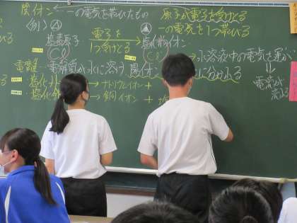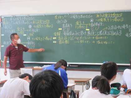 3年理科では、電解質が水に溶け、陽イオンと陰イオンに分かれる電離について、塩化ナトリウムと塩化銅の例をもとにまとめました。