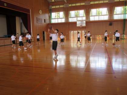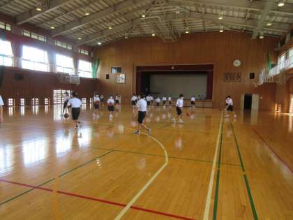 1年保体では、涼しくなった体育館で、バスケットボールをやりました。45度からのランニングシュートの練習です。
