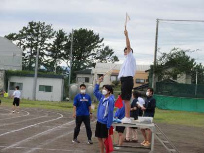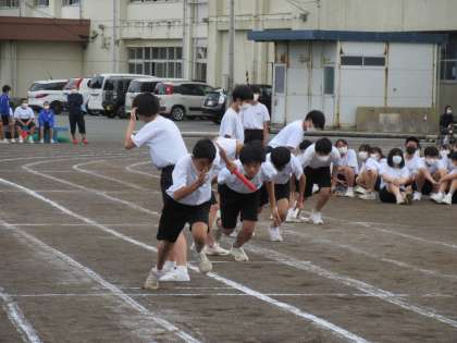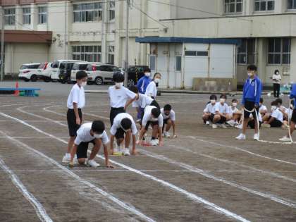 3時間目から体育の部、総練習が行われました。写真は5時間目に行った、潮騒リレーの練習です。