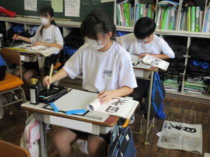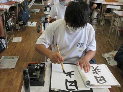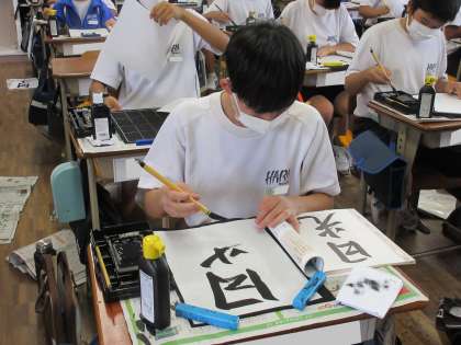 1年書写では、「日光」が題材です。みんな素晴らしく集中して向かっています。
