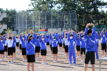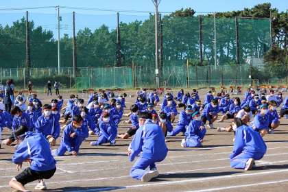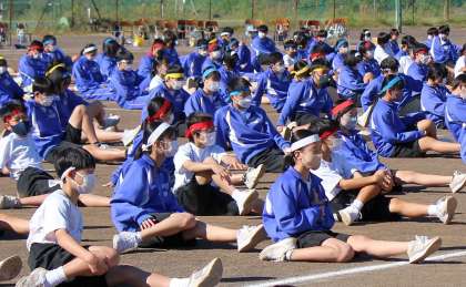 怪我防止のための準備体操です。みんなストレッチをしっかり行っていますね!