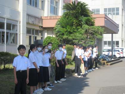 朝から照りつける強い日差し、今日も暑くなりそうです。あいさつ運動ありがとうございます。