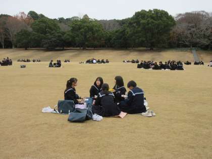 お弁当を静岡県立大学芝生園地で食べました。曇りでしたが、広大な芝生で楽しく昼食がとれました。