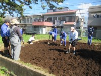 F組 畑を耕しているところです。今年度も畑作業始まりました。