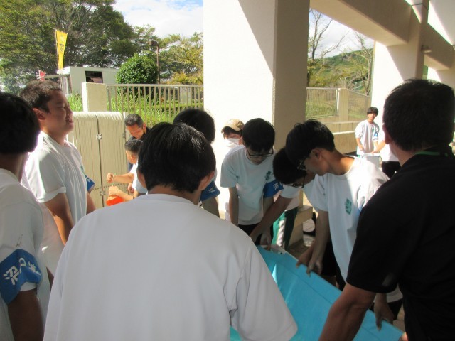 ついに午後の活動時間の間もなくして、めだか完売・・・水槽を片付け、メダカすくいからお菓子すくいに切り替えます。こちらも長蛇の列をなし、大盛況!!!1時間足らずで完売(もちろん無料)でした。浮島中生大活躍の1日となりました。送迎の保護者の皆様、御来場いただきました皆様、ありがとうございました。生徒たちは地域に貢献するとともに、郷土愛を深めたり自己有用感を高めたりと有意義な1日となりました。貴重な経験となりました!!!輝いてるね浮中生!!!