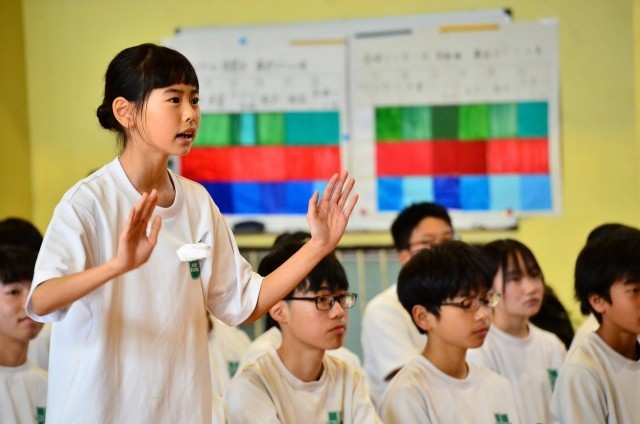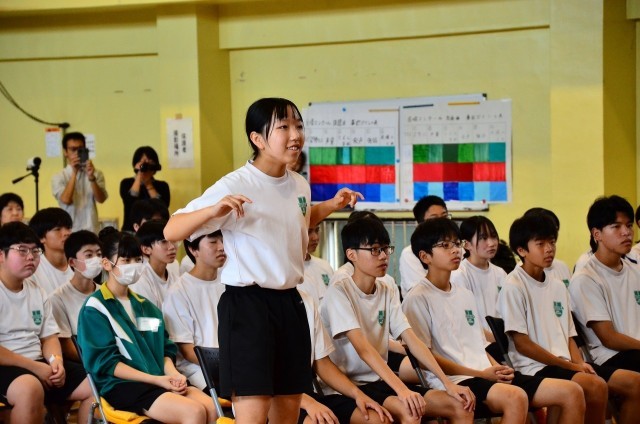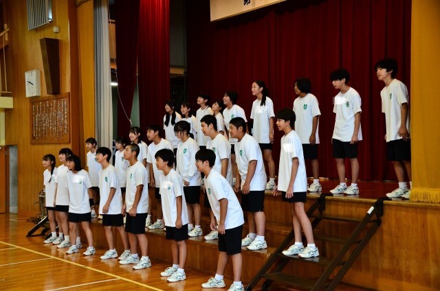 合唱コンクールが始まりました。トップバッターは、1年A組、課題曲:混声三部合唱「夢の世界を」、自由曲:混声三部合唱「空は今」です。