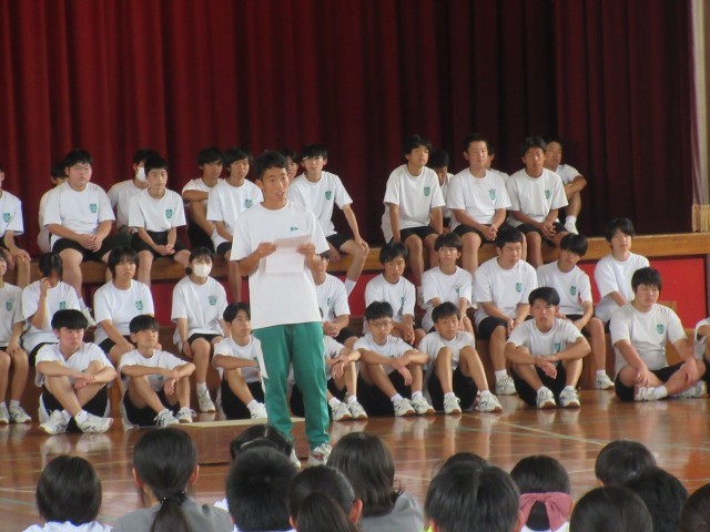 今年も浮島小中合同合唱会が行なわれました。一昨年から始まり、3回目の会となりました。中学生のはじめの言葉で「浮島小学校のみなさん、こんにちは!」「この合唱会を楽しみにしていた人?」と浮島小学生にたずねると「はーい」とほぼ全員の小学生が手をあげてくれました!!!何とも嬉しい限りです。思わず、中学生の顔も笑顔になります。一足早く到着した2年生が舞台セッティングをした後、開演までの時間で文化祭で歌った「青い鳥」を急遽、体育館で待っていた小学生に披露しました。突然の演奏でしたが、見事なパフォーマンスでした。司会進行は、文化祭からの合唱係と生徒会本部役員の生徒で行ない、恒例の「夢の世界を」と「浮島のうた」、文化祭校内合唱コンウール金賞受賞クラスによる「Chessboard」を披露しました。