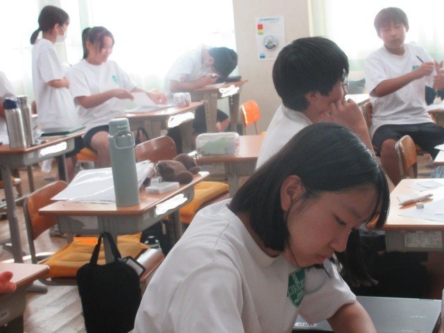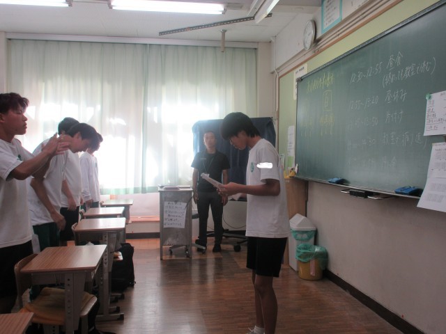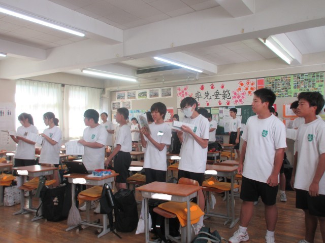 体育の部が終了し、記念撮影タイムです。みんないい顔ですね!!!教室に戻り、帰りの会・・・今度は浮島コミュニティ祭に向けての合唱練習を行っています。次のステップへと進んでいます!!生徒の自主性・主体性はすごい!!!学校経営目標「自分の考えをもち、それを表現できる子」「目標に向かい、粘り強くしなやかに取り組む子」の体現です。頑張ってます!!!輝いてます!!!浮中生!!!