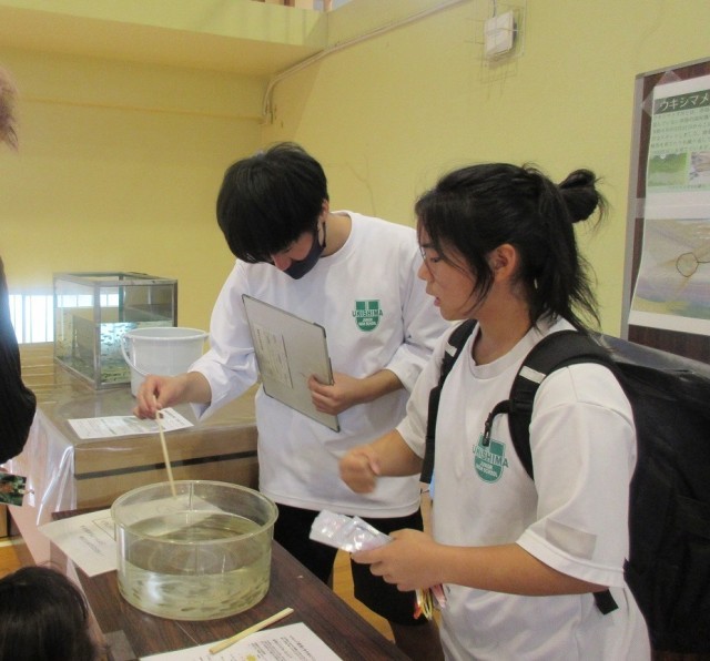 体育館では浮島クラブによる「浮島の歴史」「浮島メダカ」の店舗を運営しました。駒止の椋の木そしてウキシマメダカを全国へ発信する第1歩です。