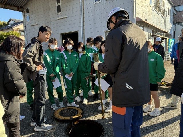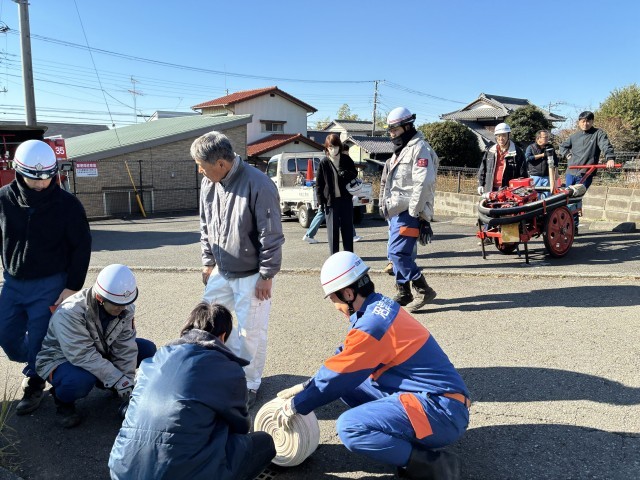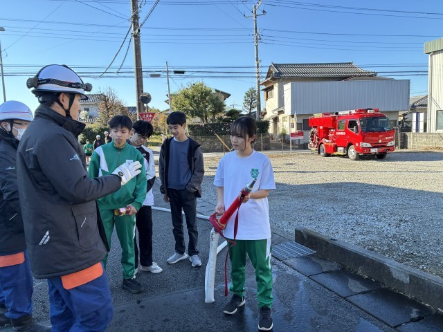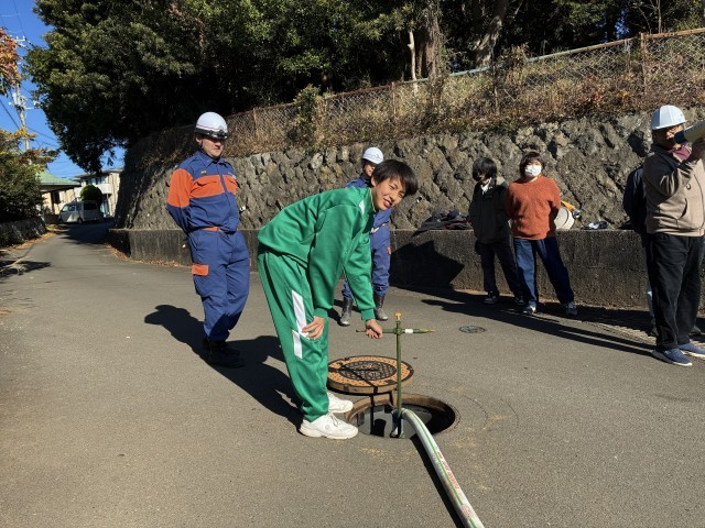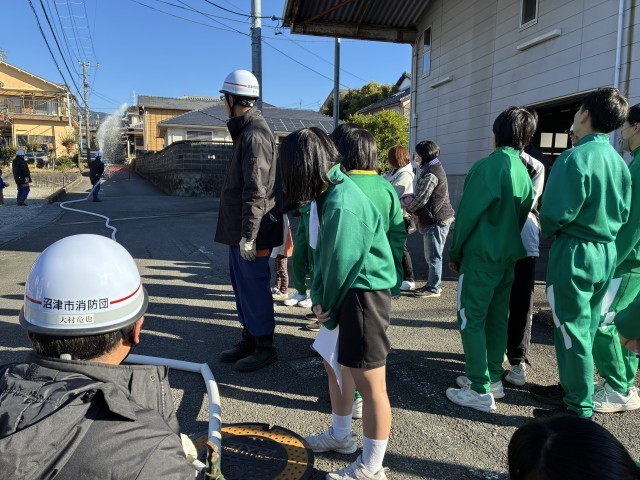 本日、午前9時、地域防災訓練を実施しました。各支部の様子です。マンホールを開け、ここから消火活動に使う水を確保し、つないだホースから放水します。浮島中生も消防団の皆さんに教わったとおりに消火活動訓練を行いました。地域に貢献できる浮島中生を地域で育てていただいております。地域の皆様、ありがとうございました。