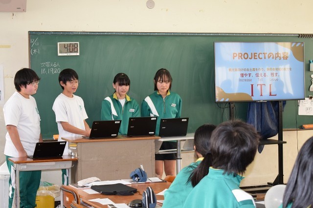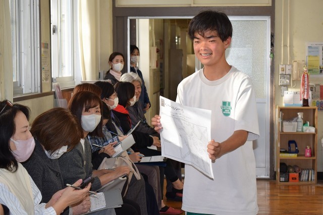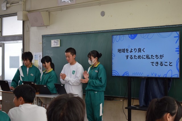 5~6時間目に、2年生が参加しているシヅクリプロジェクト「エンジン」の校内発表会を実施しました。これまでもご来校いただいたRYOBIの皆様が来校され、今回は静岡工場長様にも審査、コメント、そして表彰をしていただきました。また、発表会には、連合自治会長様をはじめ、地域・保護者の方など多くが参観され、連合自治会長様からは「明日の地域を担うものとしての期待」と励ましの言葉をいただきました。各グループとも、浮島中生らしい柔軟な発想力で地域に新たな価値を生み出すような、楽しい提案・プレゼンがされました。