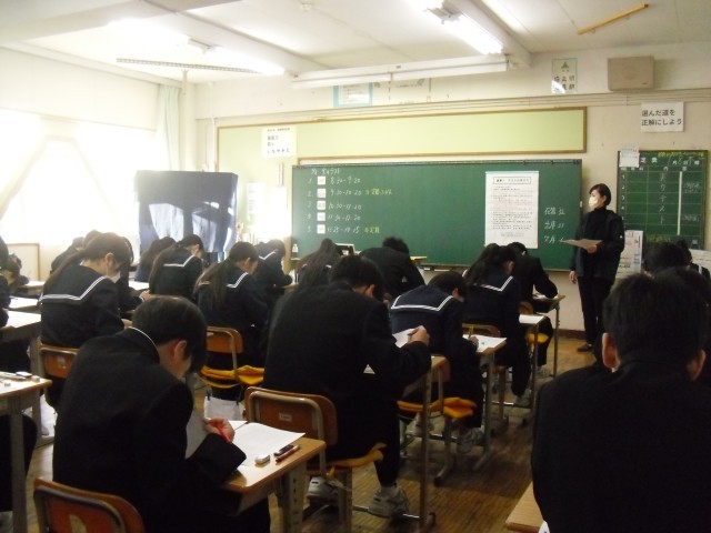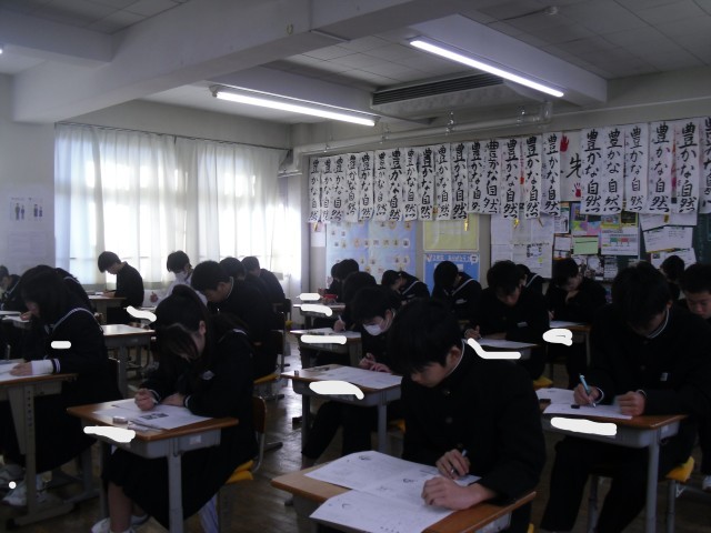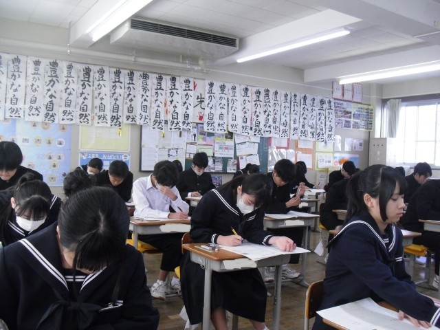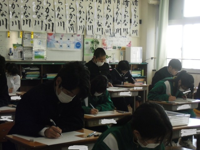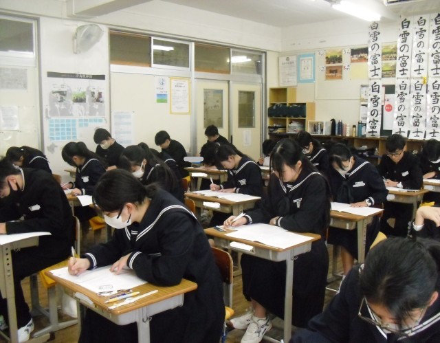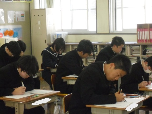 新学期2日目は朝から1・2年生は学力調査、3年生は実力テストを行っています。もうすぐ給食・・・頑張れ浮中生!!!