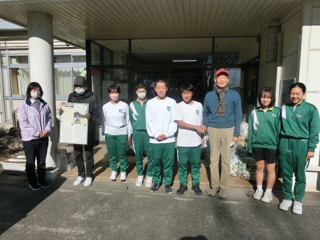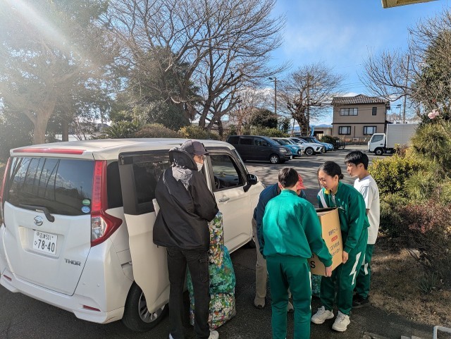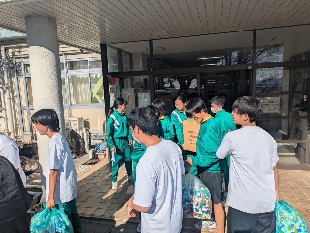 ポリオワクチンを贈るための資金に変わることや、SDG’sの視点などペットボトルキャップを回収する意義などを生徒会本部の生徒に説明していただき、感謝の言葉をいただきました。その後、1年生の生徒も駆けつけ、車に運び込む作業を率先して手伝いました。