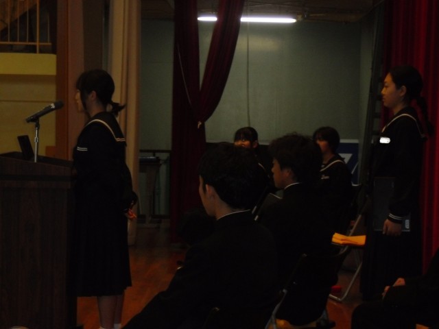 令和8年度 前期生徒会本部役員立候補者立会演説会が体育館で行われました。学校生活をより楽しく・・・より充実したものに・・・来年度が楽しみです。