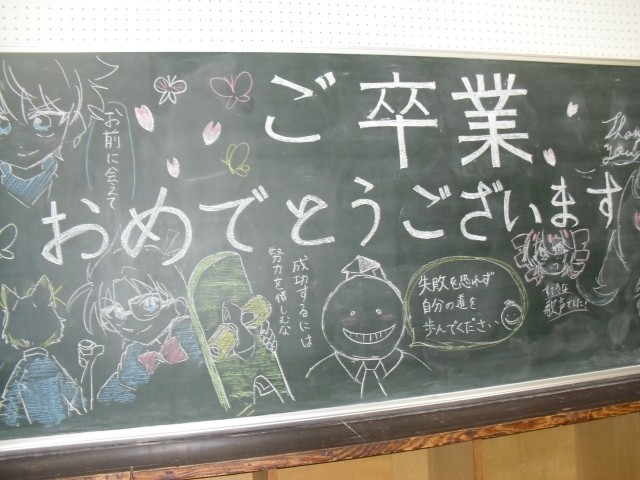 前日、担任は生徒一人一人の名前を黒板に刻みながら、心を込めてメッセージ文を完成させました。1年生の時から過ごしてきたこの教室とも今日でお別れです・・・。