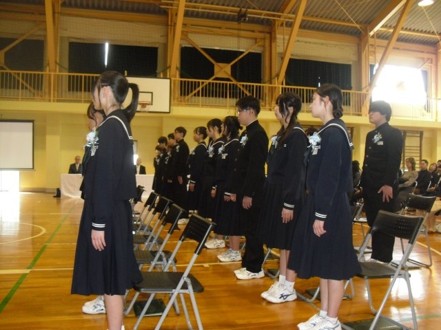 本日、卒業証書授与式が挙行されました。この浮嶋中学校でたくさんのことを学び、心身共に大きく成長した3年生32名が立派に巣立っていきました。