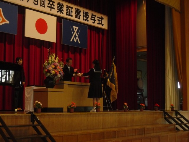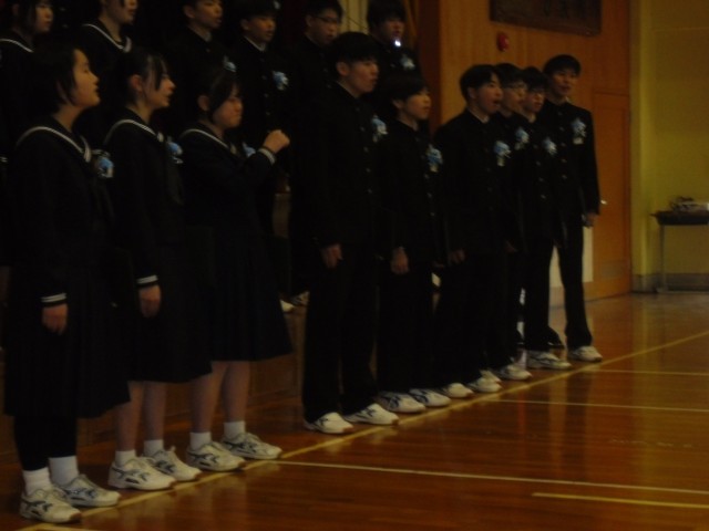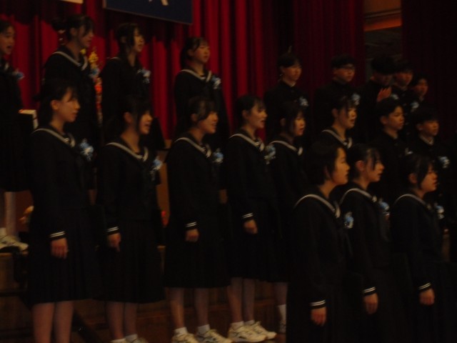 卒業式は荘厳な雰囲気の中、始まりました。一人一人の呼名の返しも素晴らしく、在校生の送辞、卒業生の答辞も涙を誘いました。全校生で歌った式歌「群青」は圧巻でした。友との絆、感謝・・・一人一人のたくさんの想いが込められた素敵な歌声でした。