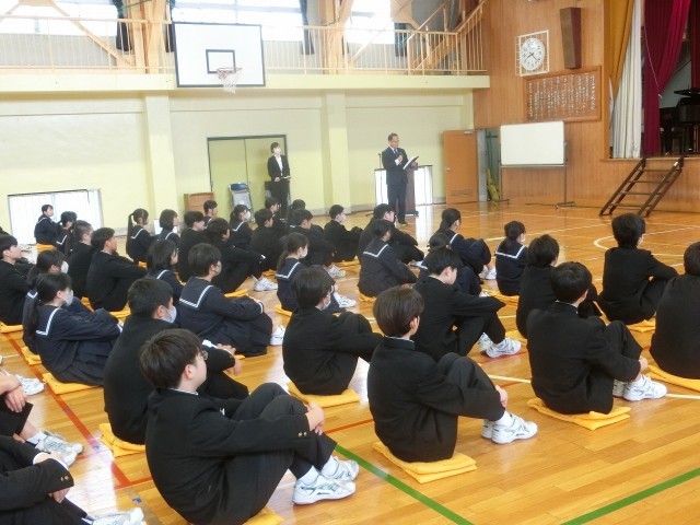 始業式に先立ち、着任式が行われ、今年度着任した5名の教職員をお迎えしました。