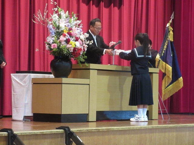 代表生徒によるスピーチは、これまで導いてくださった小学校の先生方や、温かく見守ってくれた保護者の方々への感謝の気持ち、そして何よりもこれから始まる中学校生活への強い意気込みや期待が語られることで、会場が希望に満ちた素晴らしい時間となりました。