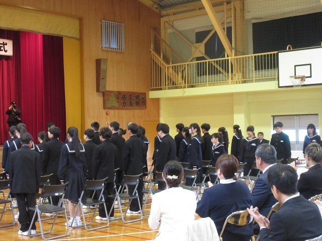 今年度の新入生は32名。 全員揃ってこの日を迎えられたことを大変嬉しく思います。 式に臨む新入生たちの凛とした表情がとても印象的で、体育館には心地よい緊張感と温かい拍手が響き渡りました。担任の先生からの呼名に対する返事も大変立派でした。
