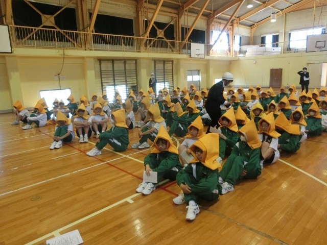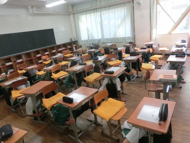 新年度最初の避難訓練です。突発的な地震を想定して行われましたが、迅速に行動することができました。その後、地区別に分かれ、危険箇所について話し合いました。
