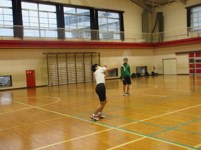 4人同時にシャトルを正確に捉える練習をしていました。