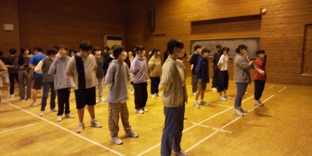 夕べの集いに向けて静かに集合完了。会もスムーズに進行し、みんなで生み出した時間は9月の椋駒祭に向けて、そして目前に迫った励ます会の応援練習となりました。