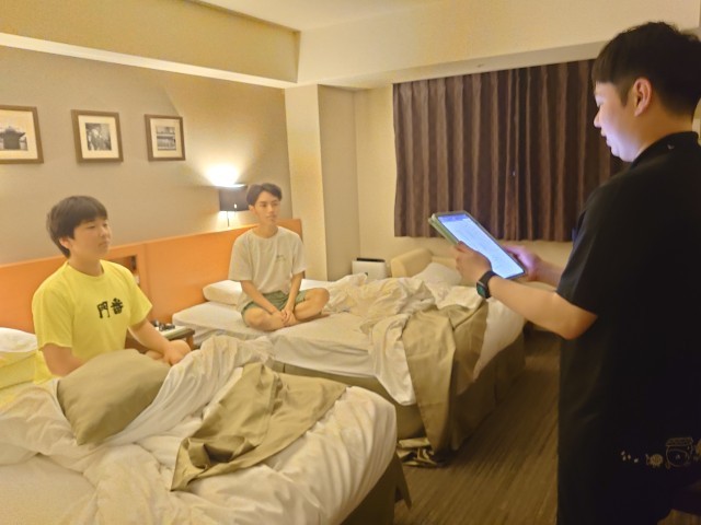 先生方が、消灯前に各部屋の最終確認に回っています。どの部屋もしっかり消灯準備が出来ていました。