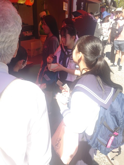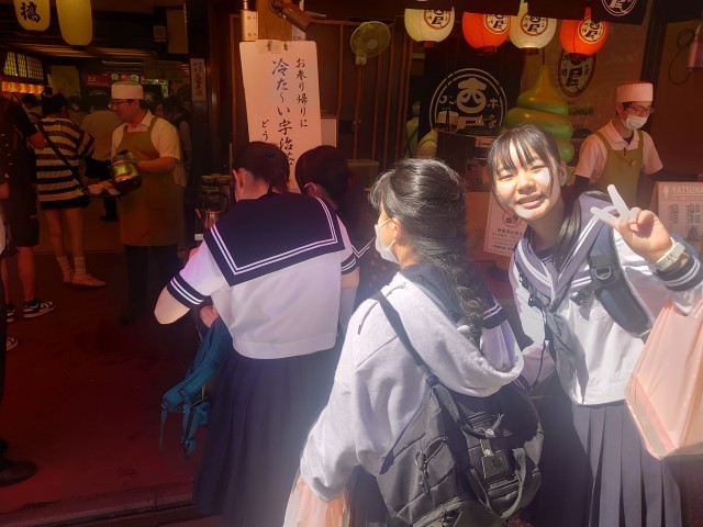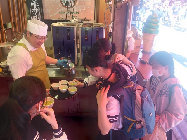 清水寺で冷たいお茶を頂いていました。