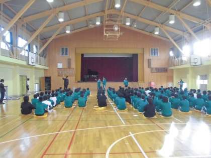 9日(水)の朝、体育館にて生徒集会を行いました。