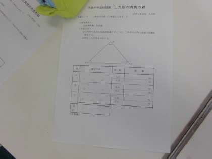 計測結果をプリントに記入しています。