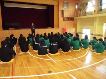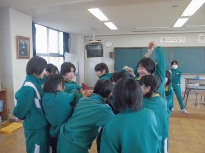 27日(水)の朝、各学年で学年集会を行いました。1・3年は学年主任よりお話があり、2年は学年委員を中心にレクを行いました。