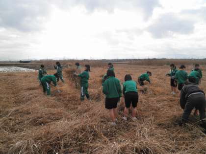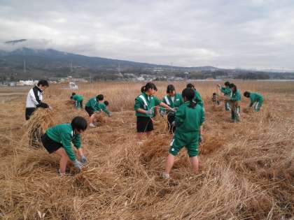 1月31日(日)、浮島地区の休耕田で草刈りのボランティア活動に本校の1・2年生33名が参加しました。