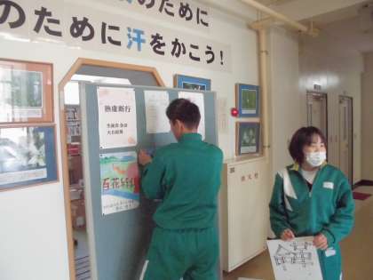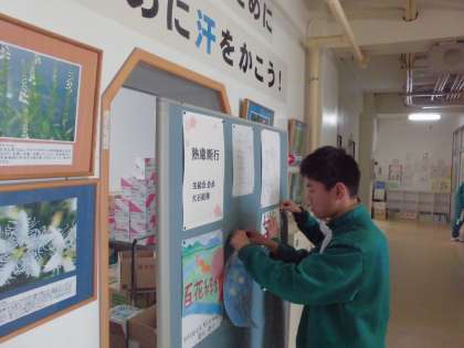 本日(25日・木)の昼休み、選挙管理委員会が平成28年度前期生徒会役員選挙の掲示物を作成しました。選挙は3月3日に行います。