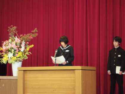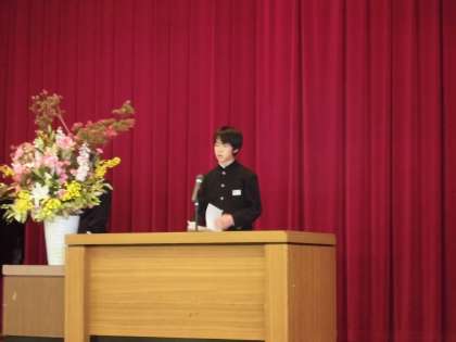 各学年の代表生徒が新年度の抱負の発表をしました。