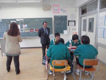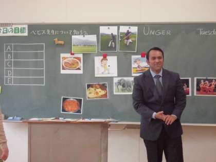 今年度、新しくALTとして配属された、Bevis Unger (べビス・アンガー)先生です。インドから日本に来られました。生徒たちは、べビス先生に聞きたいことを英語で考えて質問しました。べビス先生、よろしくお願いします!
