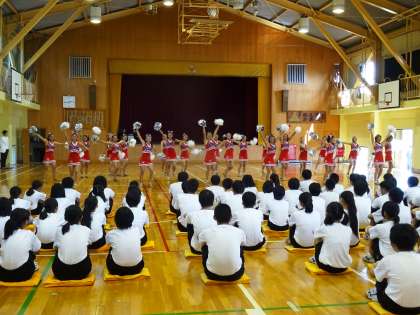 29日(月)、本校のキャリア教育推進事業として、「夢に向かって〜先輩から学ぶ〜」として、加藤学園高校のチアリーダー部と応援団をお呼びし、ダンスや演舞を披露していただきました。