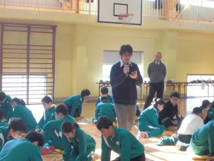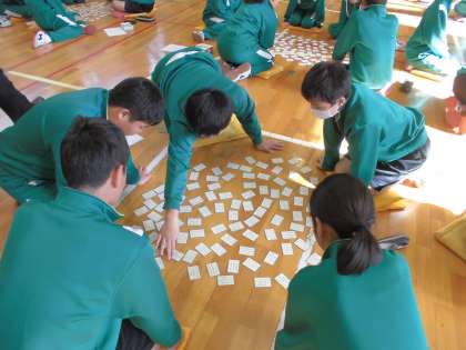 13日(金)に百人一首大会を開催しました。全員が真剣に読手に耳を傾け、札を取っていました。