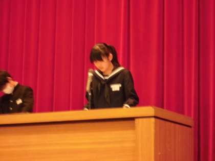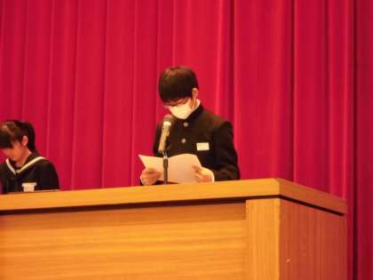 各学年の代表生徒が新年度の抱負の発表をしました。