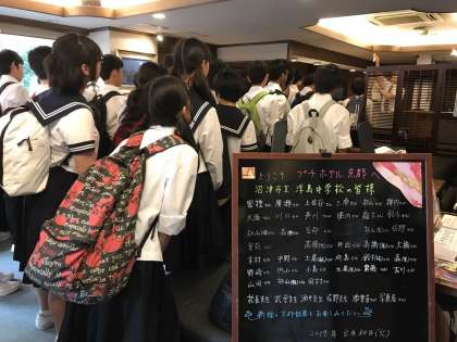 心のこもったウェルカムボードが浮中生を迎えてくださりました。2日間、よろしくお願いします。