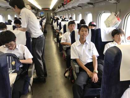 新幹線に乗りました。生徒もお疲れの様子です。