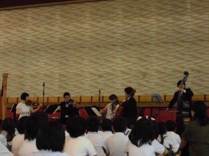 8日(木)、浮島小学校にて東京アイティスツ合奏団のコンサートが開催され、本校の生徒も参加しました。