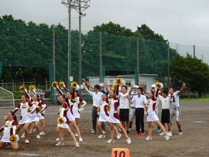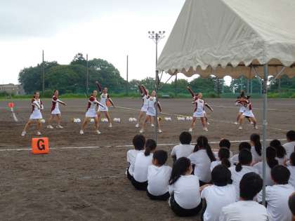 チアリーダー部の演技です。元気はつらつです。生徒や先生も混ざってダンスをしました。