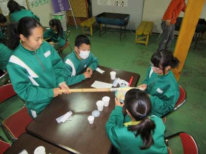 ミルクランドさんでは、施設見学した後、バウムクーヘンづくりに挑戦しました。