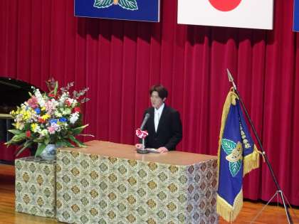 来賓祝辞。PTA会長杉山様ありがとうございました。