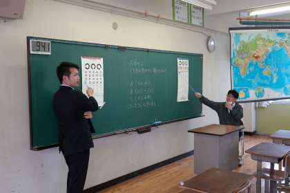 教室では、視力検査を行っています。
