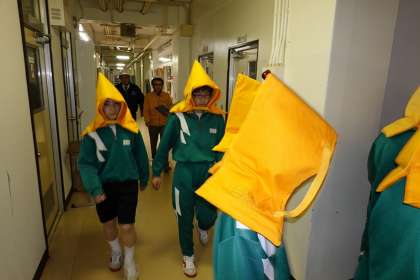雨がぱらついていたため、グラウンド避難をやめ、体育館への避難に変更して実施しました。