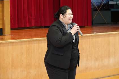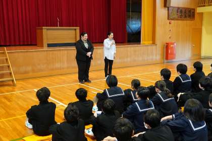 朝礼後、本校のALTの紹介が行われました。